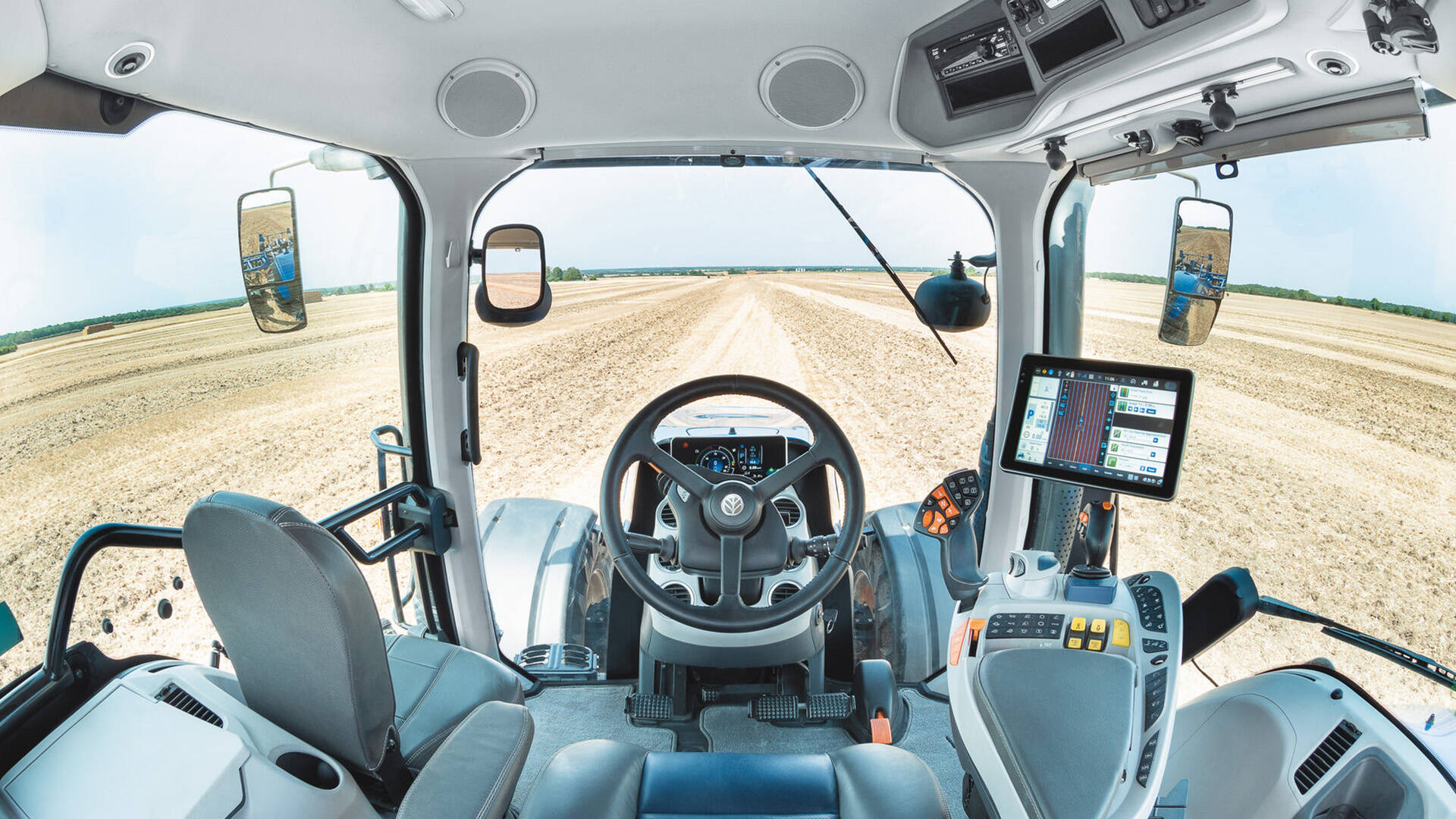 Ať už se nacházíte na otevřeném poli nebo na rušné silnici, je pro vás důležité mít přehled o svém okolí. Snížili jsme počet překážek v kabině, umístili jsme palubní displej InfoView™ do přímé viditelnosti a dokonce jsme nainstalovali kamery na přední kapotu a kamery směřující dozadu pro bezpečnost silničního provozu a práce na poli.